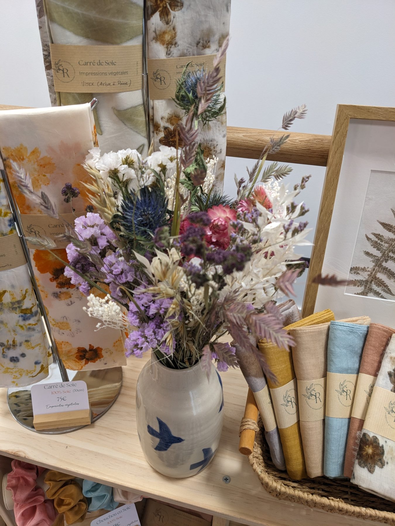 Après le départ de la céramiste avec qui je partageais mon atelier, j’ai accueilli depuis le mois de février une nouvelle artisane, Sous les Ronces, dont le cœur de métier est la teinture végétale et les impressions botaniques !